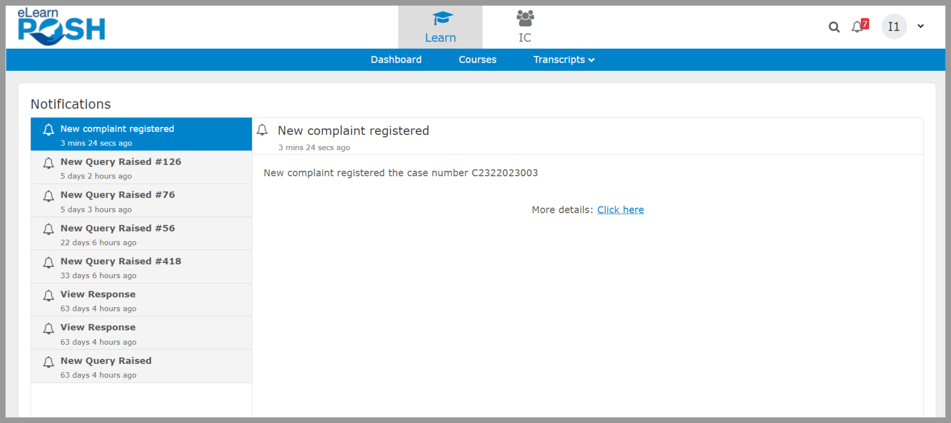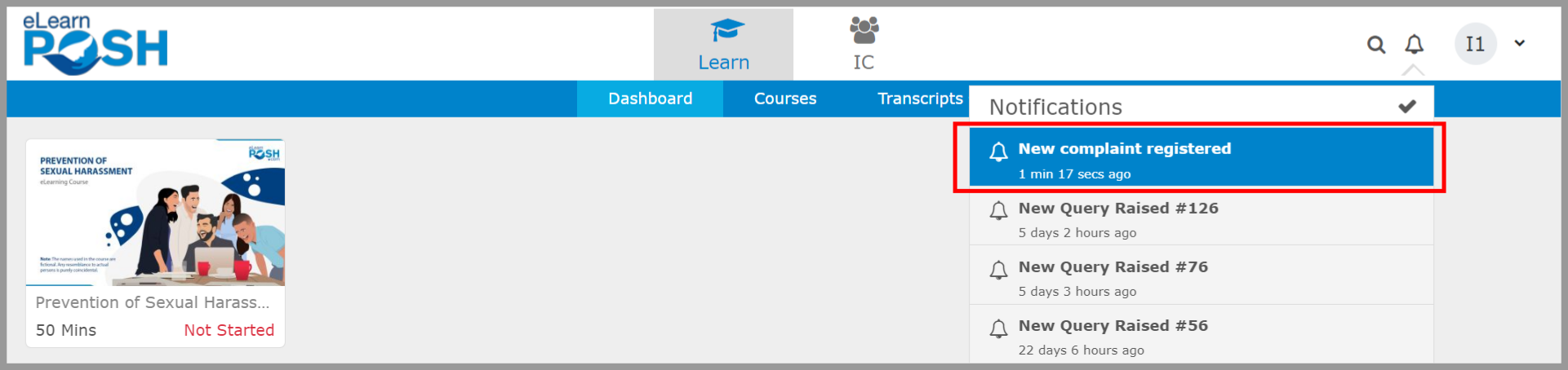 All the notifications will be received on the LMS and to your email ID (which is registered and enrolled in the eLearnPOSH.com’s portal) as shown below.