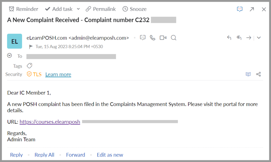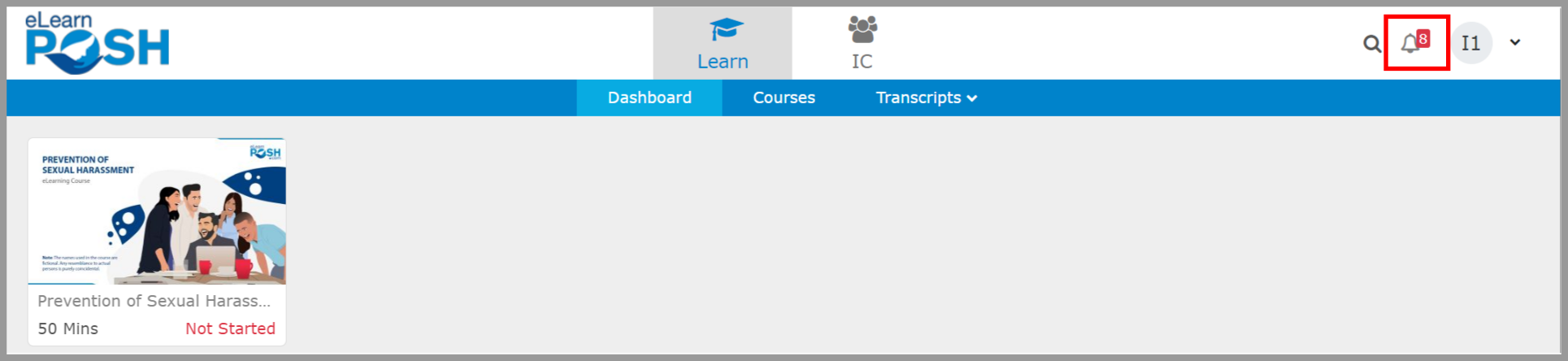 All the notifications will be received on the LMS and to your email ID (which is registered and enrolled in the eLearnPOSH.com’s portal) as shown below.