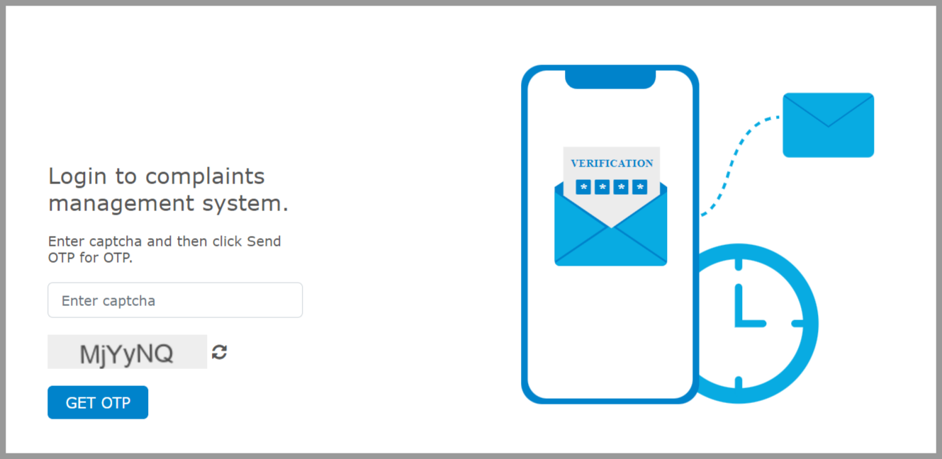 Enter the OTP, and if you wish to save the credentials on your browser for 3 days, select the “Remember this device for 3 days” option. Click “Verify and Proceed” to access the Complaint Dashboard.