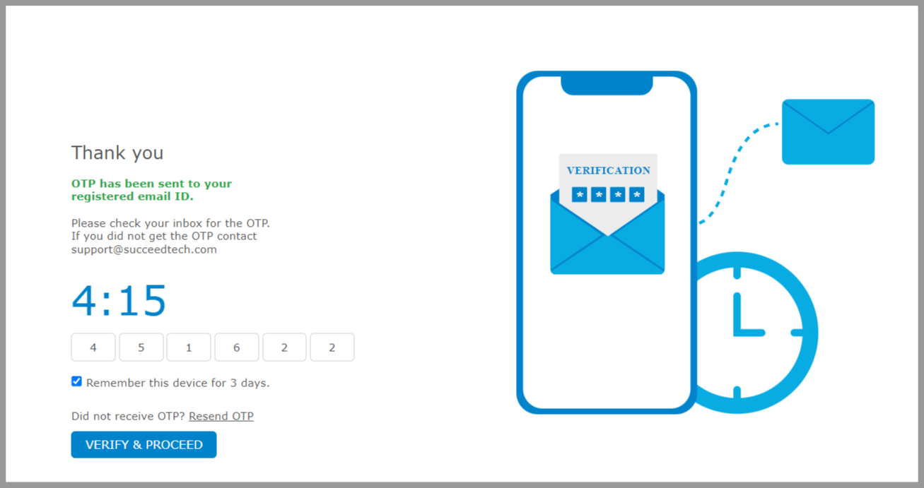 Please Note: If you did not receive any OTP, click the “Resend OTP” option when available or contact support@succeedtech.com