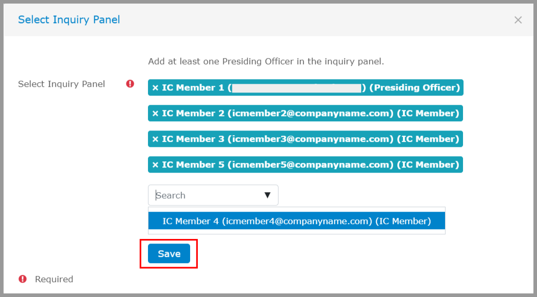 Step 2: Select the IC Members from the drop-down to add to the panel and click “Save”.