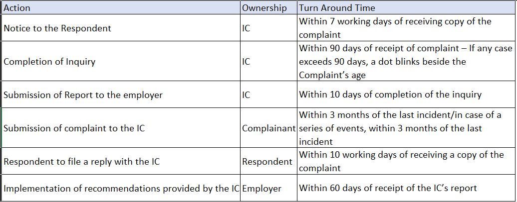 FYI, refer to the table given below to understand the turnaround time for the IC while handling the complaint.