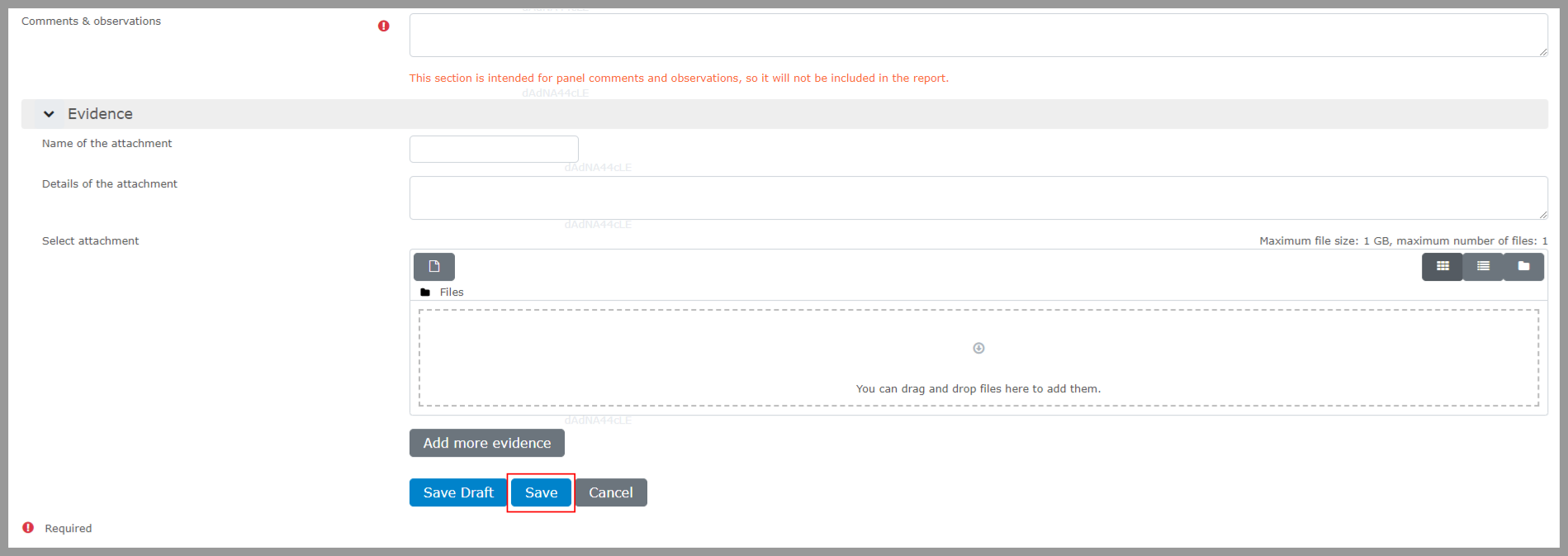 Step 3: Include any evidence if available, and then select “Save.”