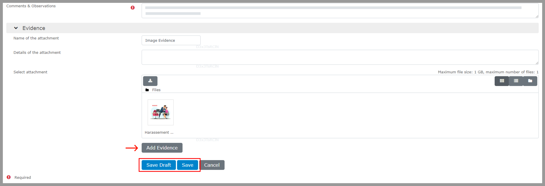 Step 3: Include the details of the evidence and then select “Save.”