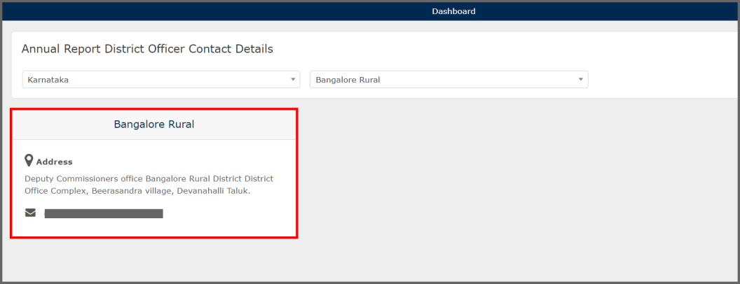 The District Officer Contact Details tab contains contact information for district offices, aiding the organization in filing the Annual Report.