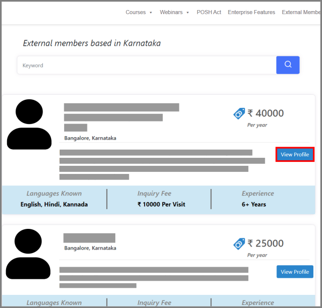 Step 5: You can click on the view profile to get contact details and information of the External Member.