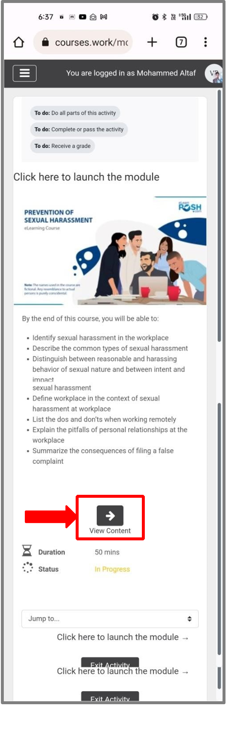 Step 4: On this screen, scroll down and click on View Content to launch the course. The course will launch in a new window