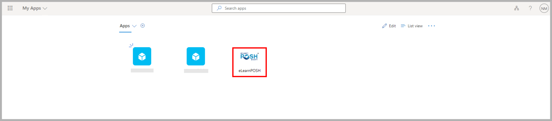 Login to your official Microsoft account (My Apps) (https://myapps.microsoft.com/). As soon as you log in, click the eLearnPOSH tile in the My Apps section, and you will be redirected to the eLearnPOSH portal