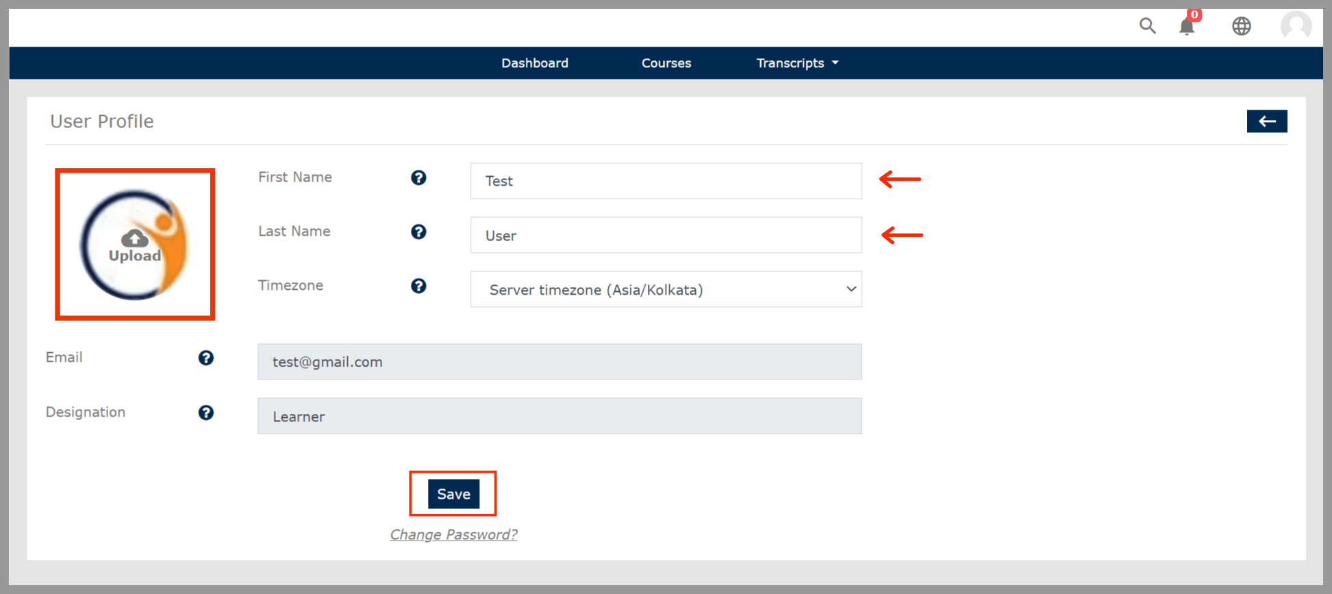 Step 2: Change the First Name & Last Name and upload a photo if required and click Save