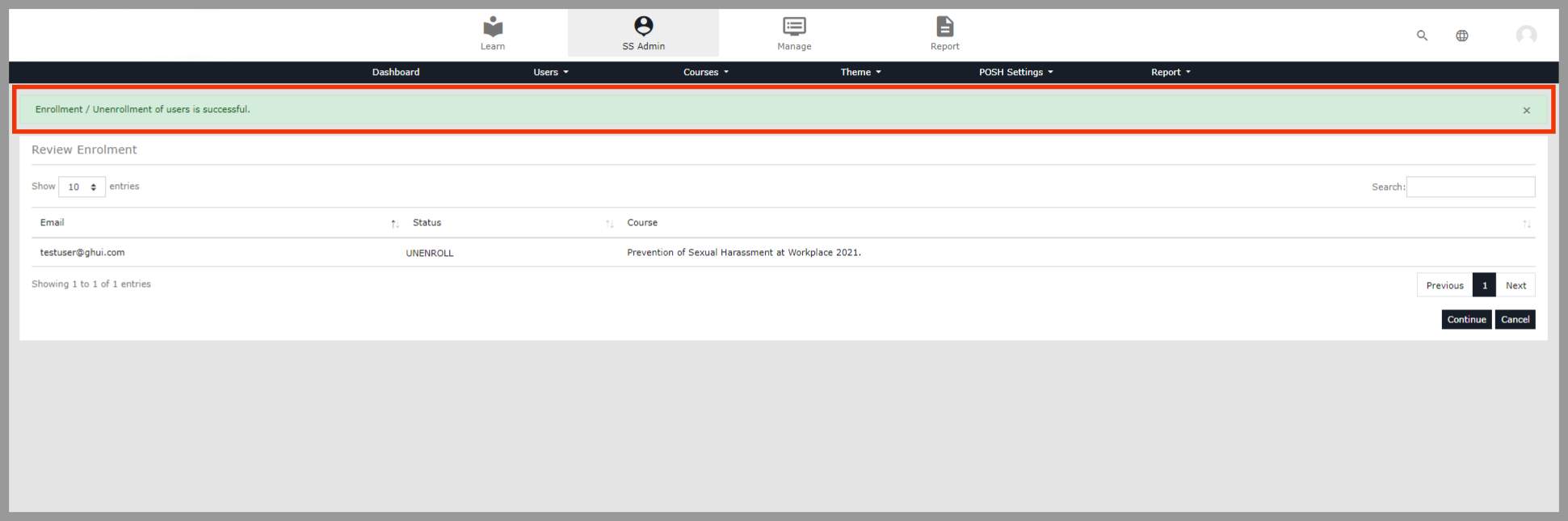 Click the “Continue” button, only when the Status of all the users is showing as Enroll.