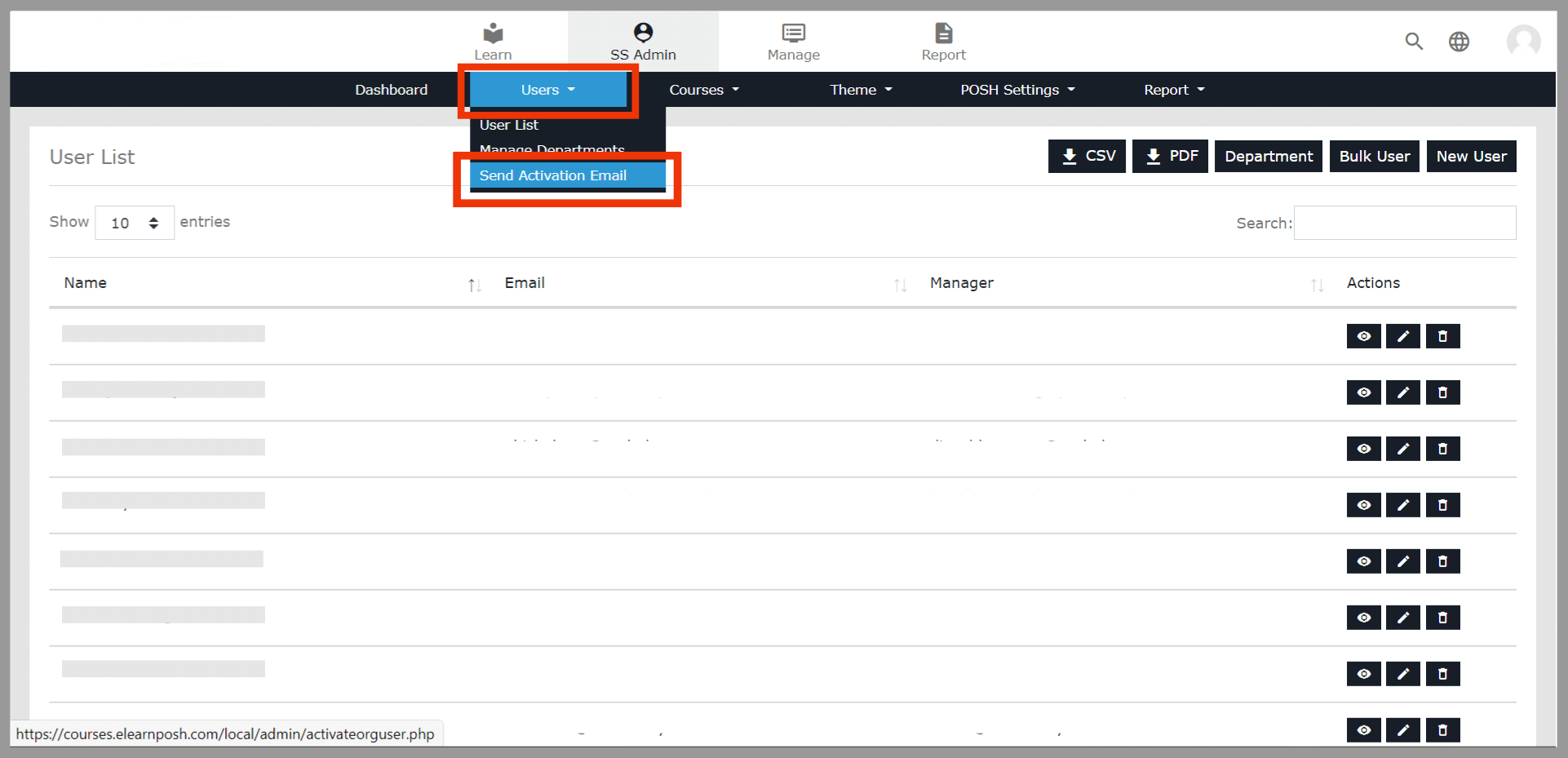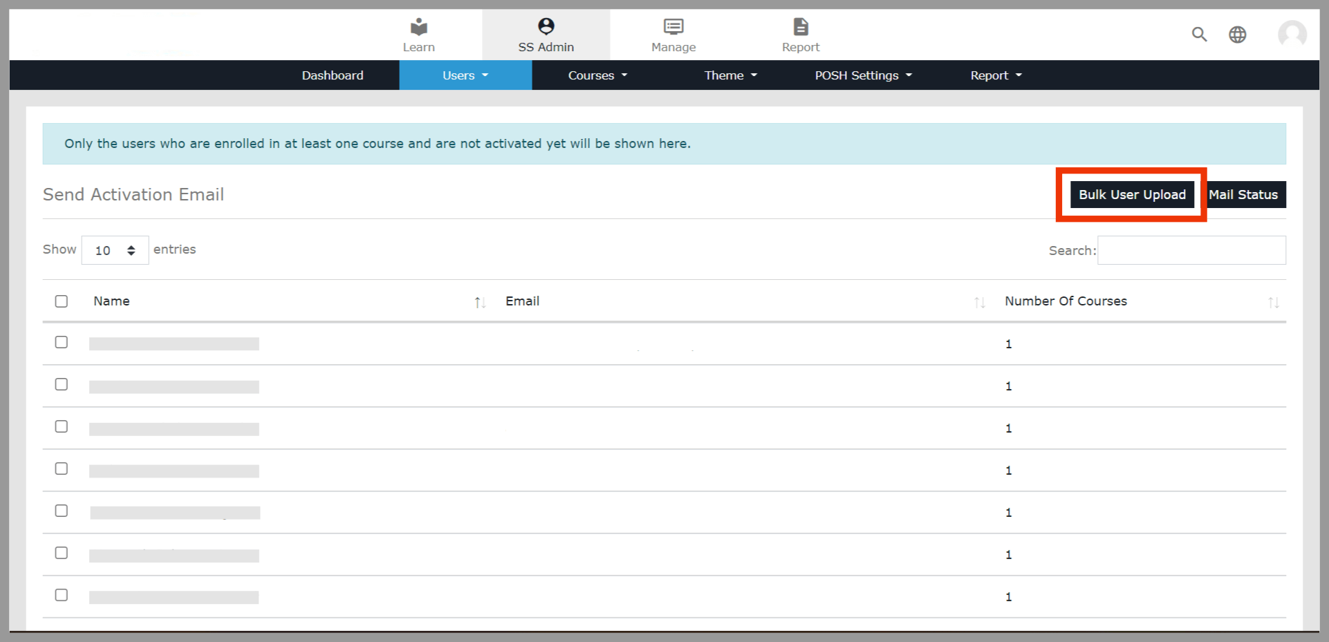 Please Note: Activation mail will be sent only if the user is enrolled in the course. The Activation mail may take up to 5 mins to reach the user’s inbox from the time of submission. The mail domain will be delivered from activation@elearnposh.com.