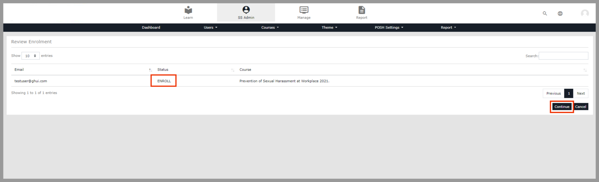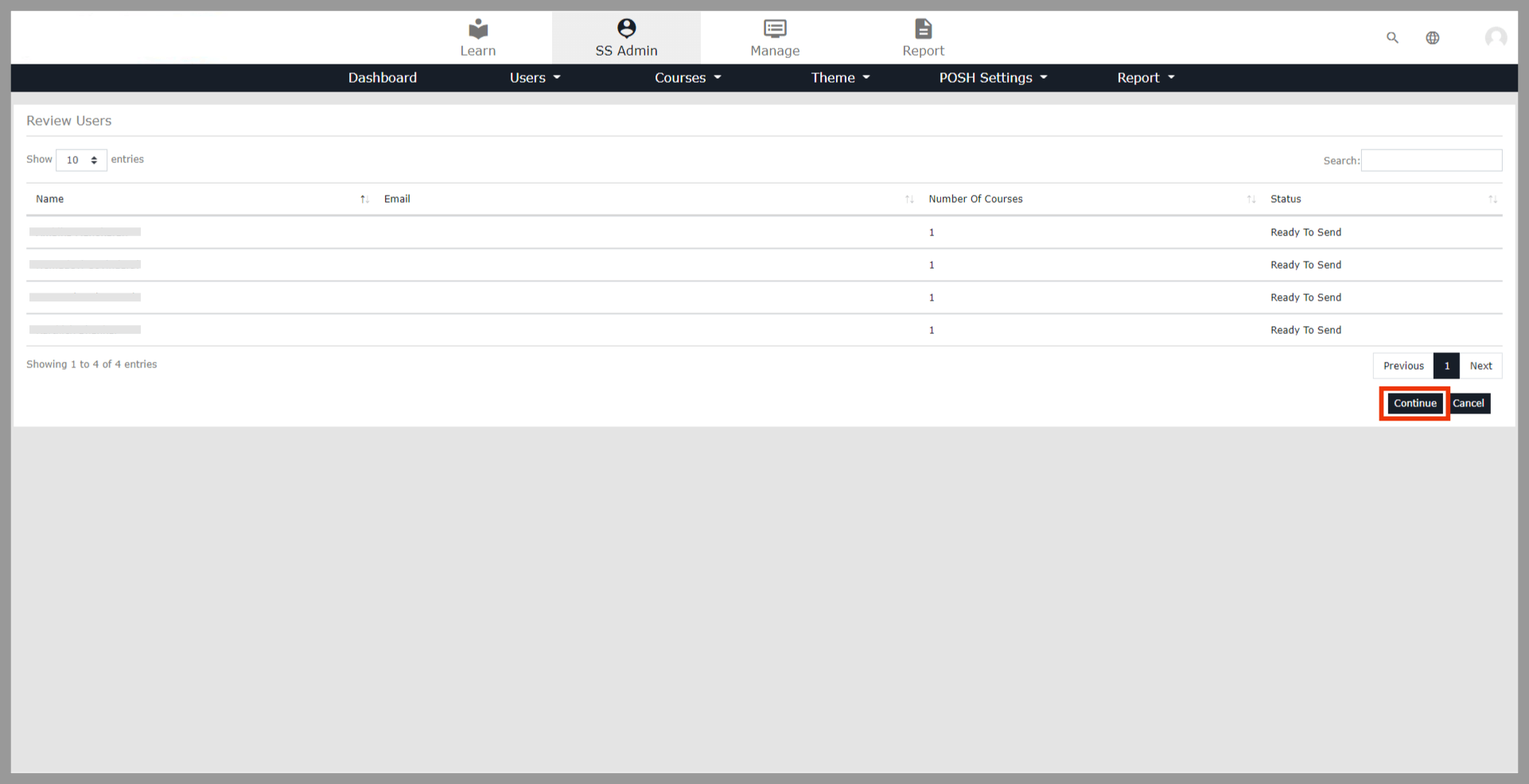 Click the “Continue” button, only when the Status of all the users is showing as Enroll.