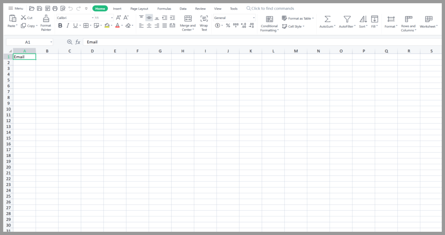 Enter the list of Email IDs. Save the file as CSV {CSV UTF-8 (comma delimited)} format