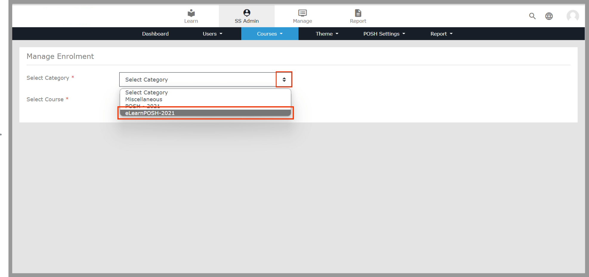 In the SS Admin, select the Courses option and then select Manage Enrollment Select the Category