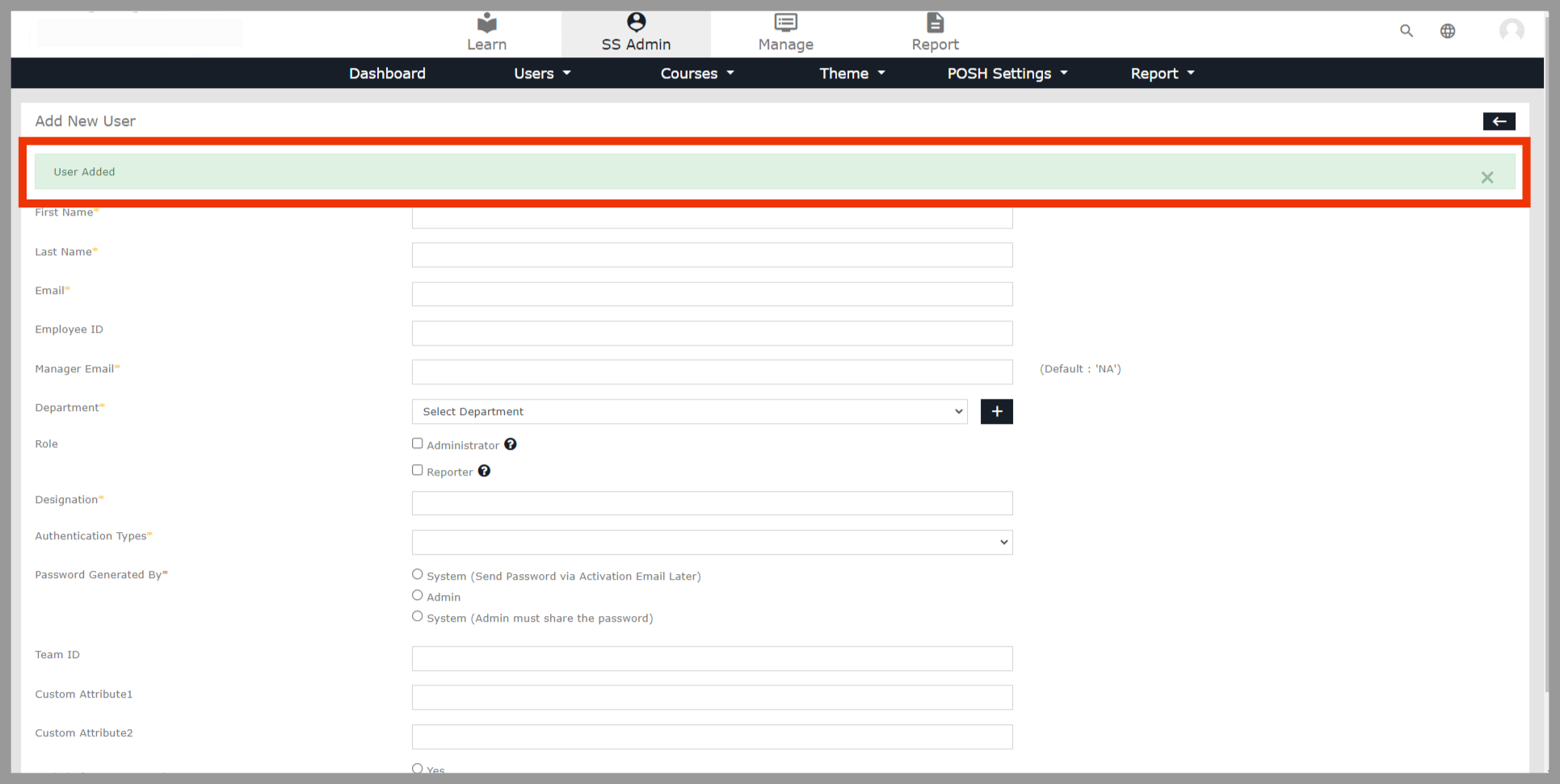 Please Note: Activation mail will be sent only if the user is enrolled in the course. The Activation mail may take up to 5 mins to reach the user’s inbox from the time of submission. The mail domain will be delivered from activation@elearnposh.com.